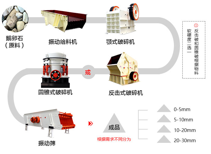 鵝卵石加工工藝可以分為破碎工藝和制砂工藝兩種,不同的加工工藝可使鵝卵石應(yīng)用于不同的領(lǐng)域范圍內(nèi),下面是對這兩種工藝的簡單分析:
